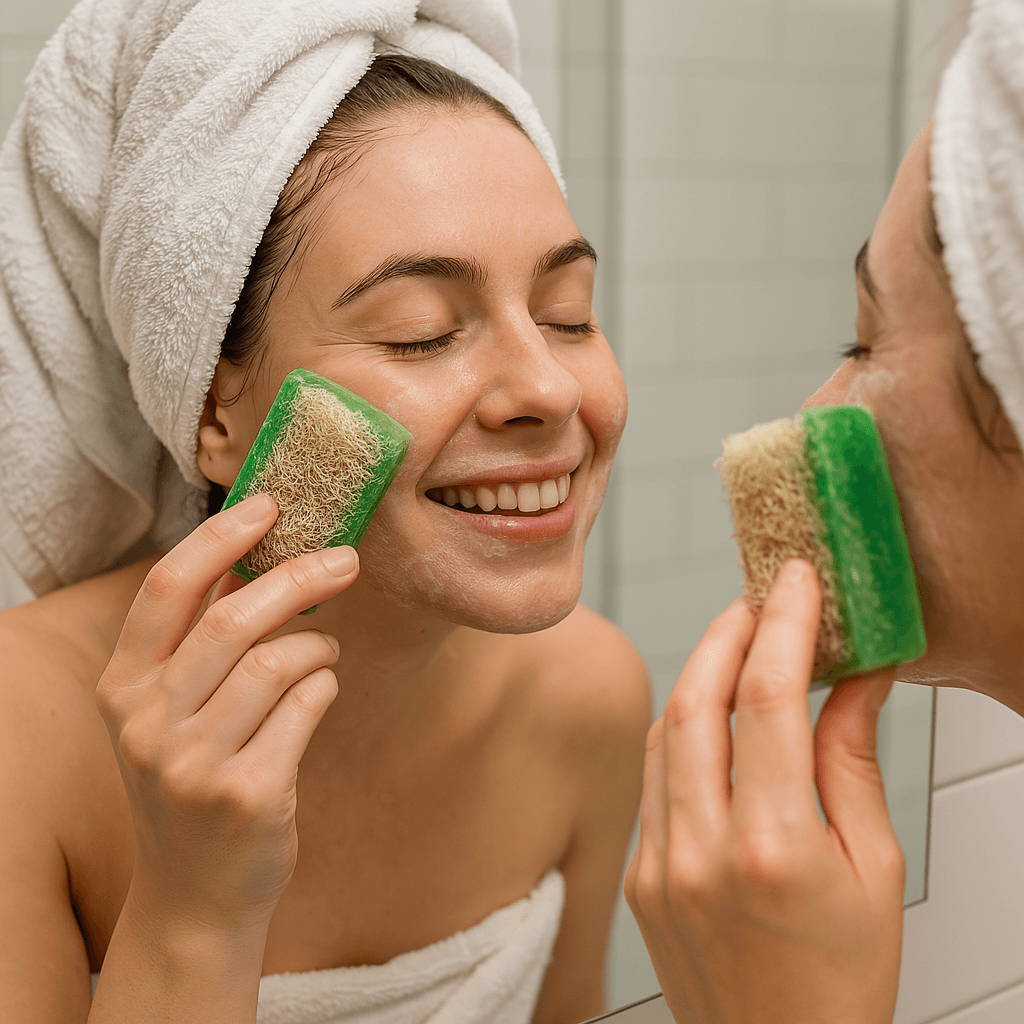 • Sanftes Peeling: Der natürliche Luffa entfernt effektiv abgestorbene Hautschüppchen und fördert die Durchblutung.